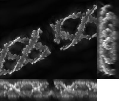 Maximum-intensity projection of a 3D widefield fluorescence image of spirogyra
